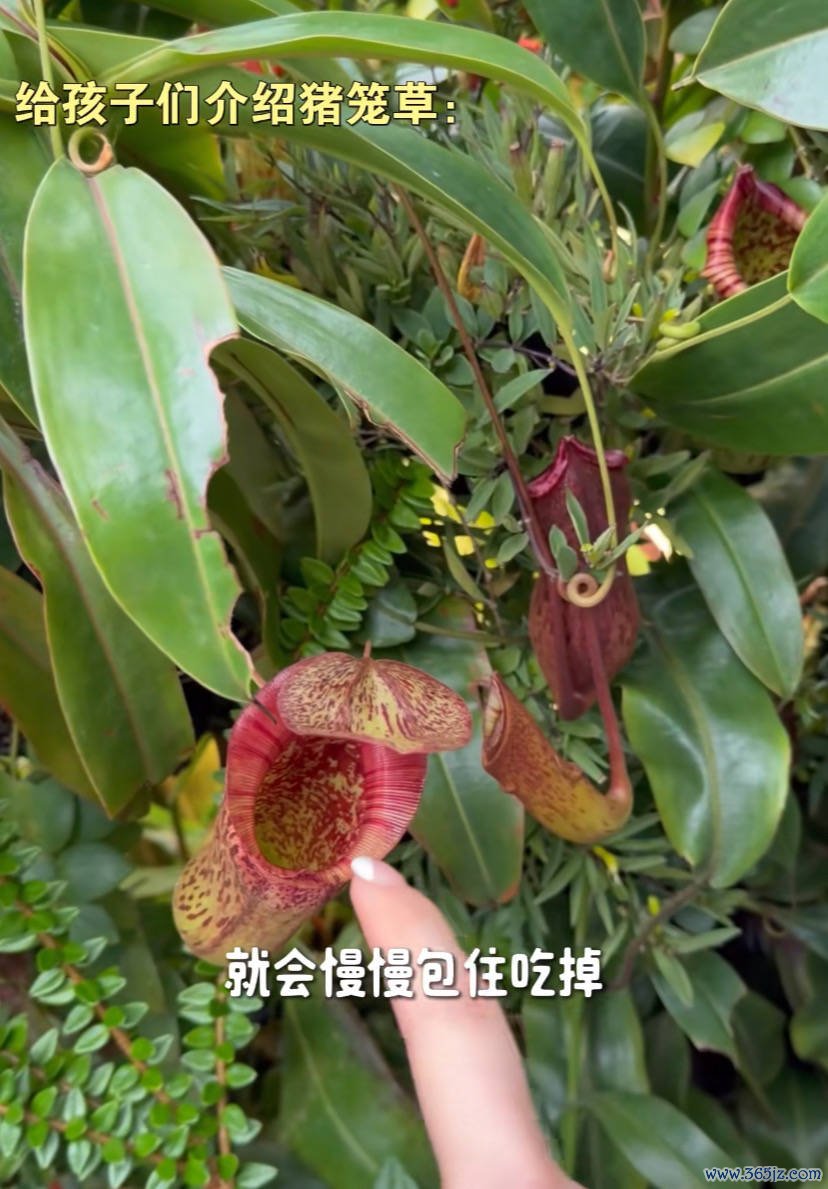 熊黛林还给孩子们介绍了猪笼草,就是苍蝇或者其他小飞虫掉进猪笼草里面,那个花朵就会慢慢的闭合,小昆虫就再也不出来了。