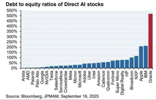 截至 9 月 16 日,甲骨文的债务股本比也显著高于一众 AI 公司。