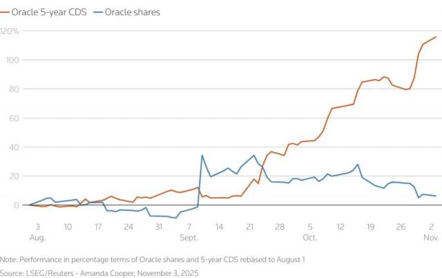而至本月初,甲骨文 5 年期 CDS 利率达到 87.7 个基点,相比 8 月以前近乎翻倍,为近 18 个月的最高水平。